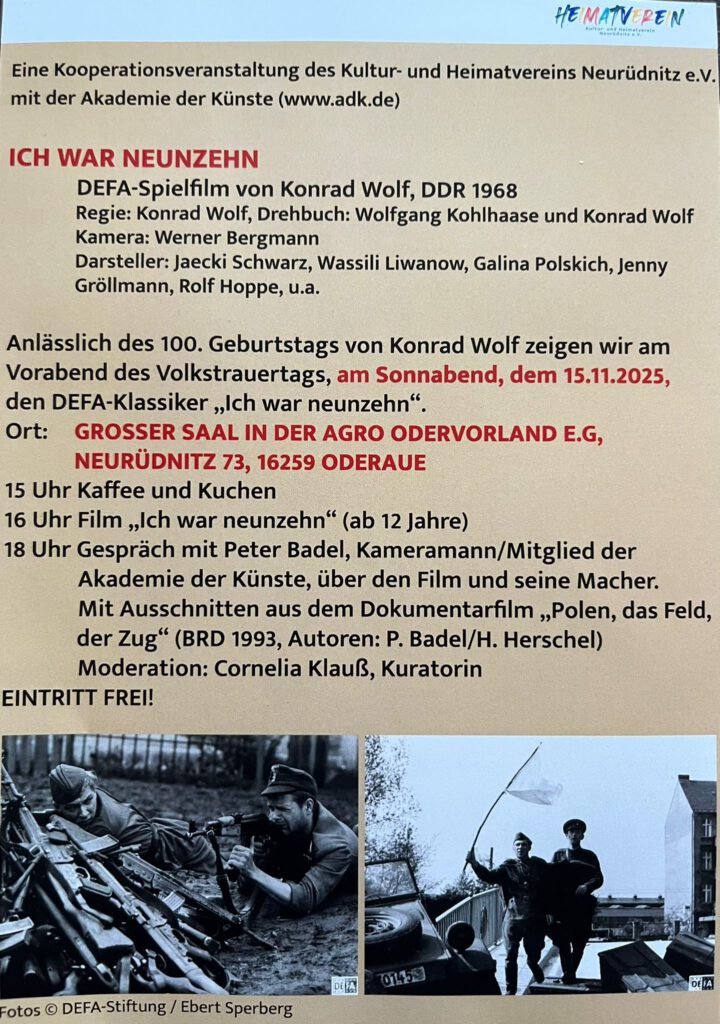 Film und Gespräch „ICH WAR NEUNZEHN“ in Neurüdnitz