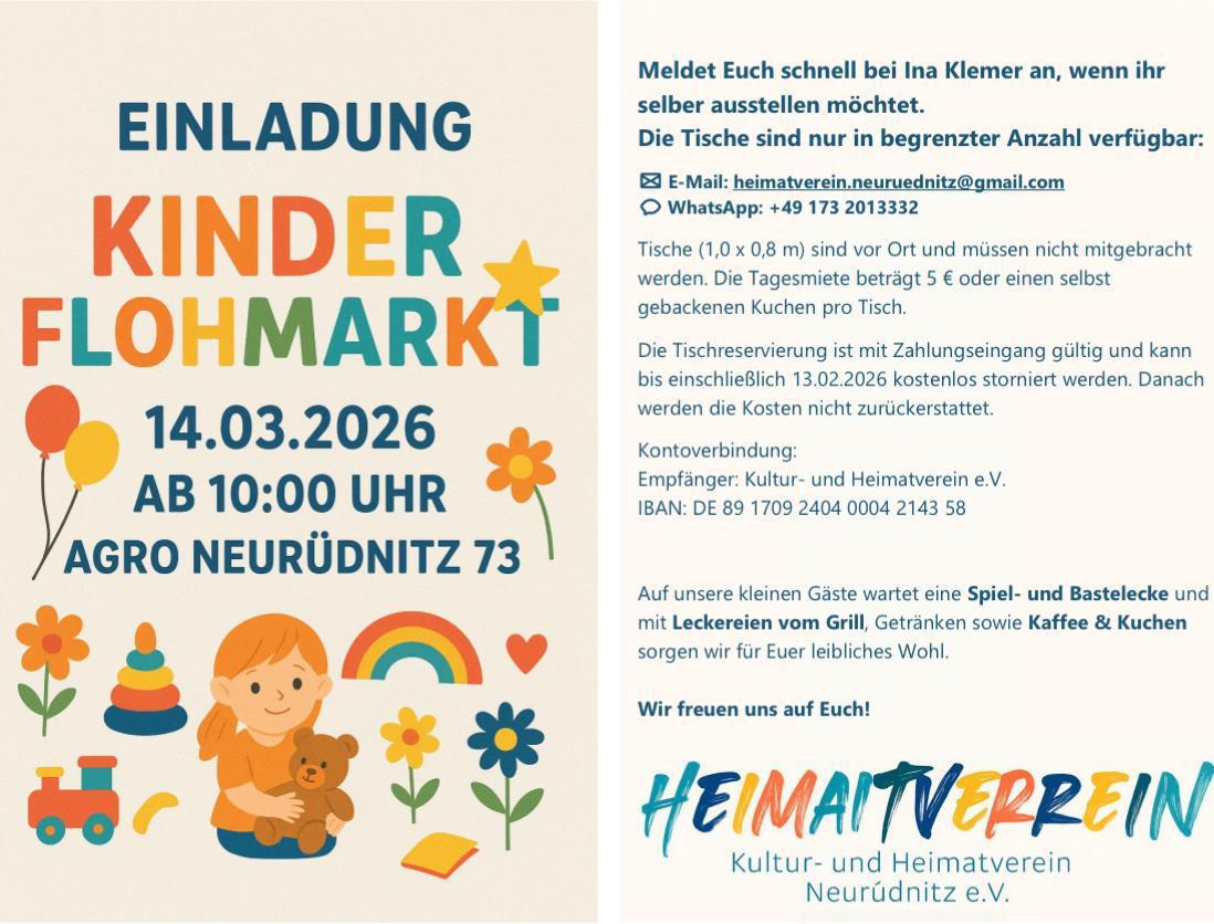 14 März / 10:00 am Kinderflohmarkt in Neurüdnitz Agro Neurüdnitz Neurüdnitz 73, Oderaue-Neurüdnitz, Brandenburg, Germany Frei